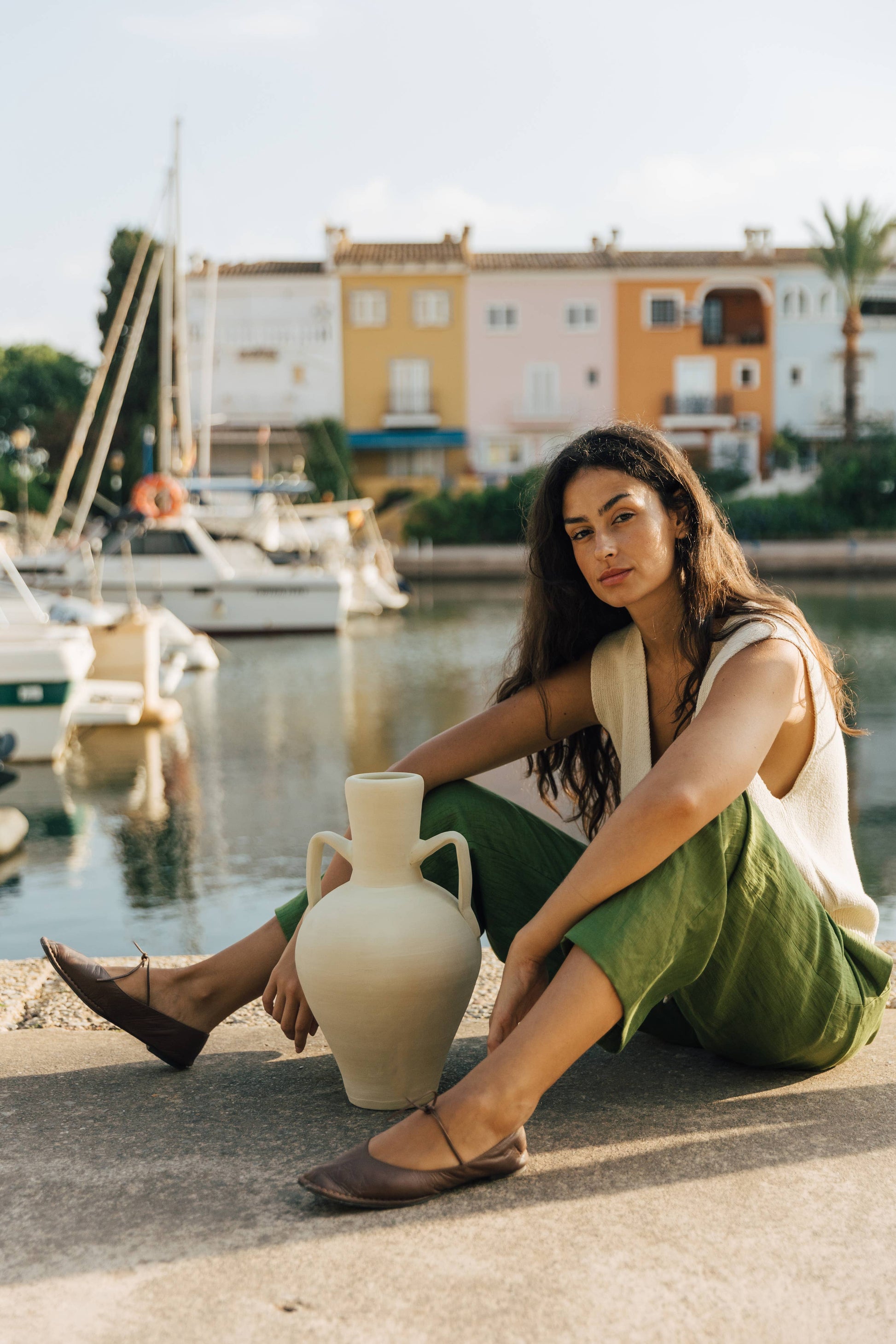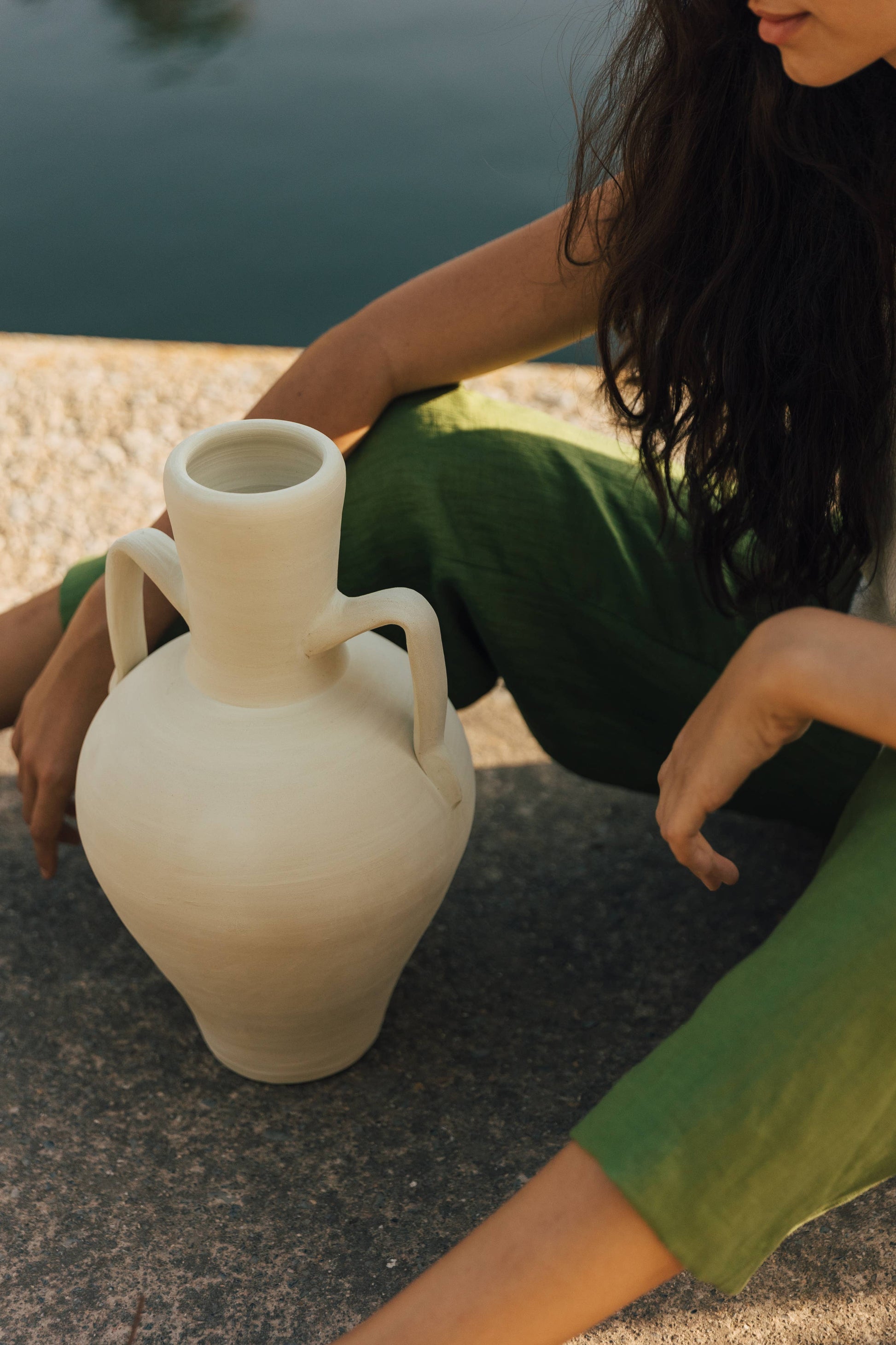 This decorative piece has a raw white appearance and a rough texture. It is made with an open pore process, so we do not recommend using it with water, as it may ooze liquid over time. Each piece is handmade and unique, so you will find imperfections and marks. Traces of craftsmanship are visible on each piece. The measurements and colors shown are approximate and may vary due to the manufacturing process.