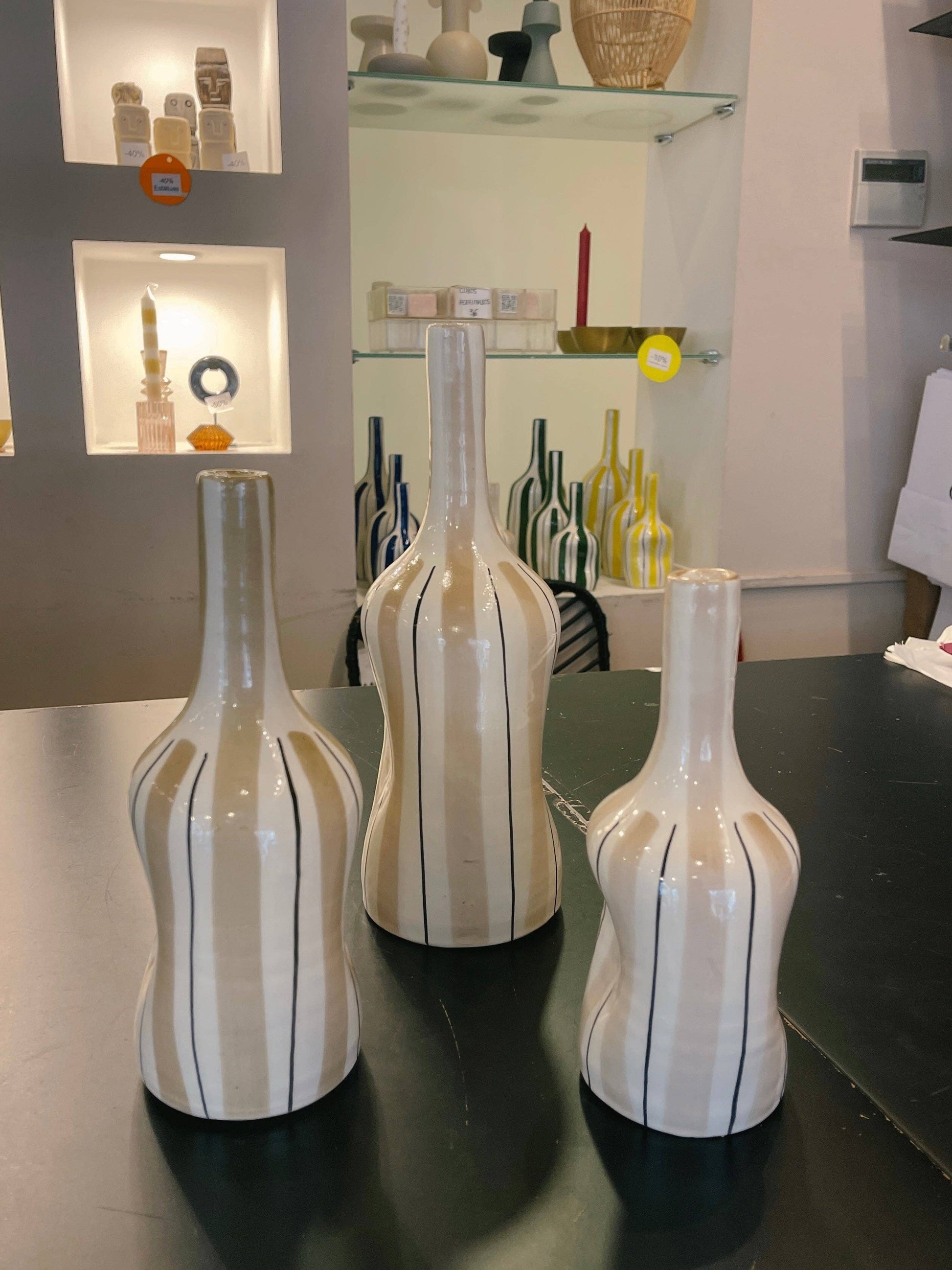 ¡Jarrones a rayas que son un éxito! Añade elegancia y personalidad a tu espacio con nuestro jarrón decorativo de cerámica a rayas hecho a mano. Cada pieza está meticulosamente elaborada por artesanos expertos, combinando técnicas tradicionales con un diseño moderno y sofisticado.