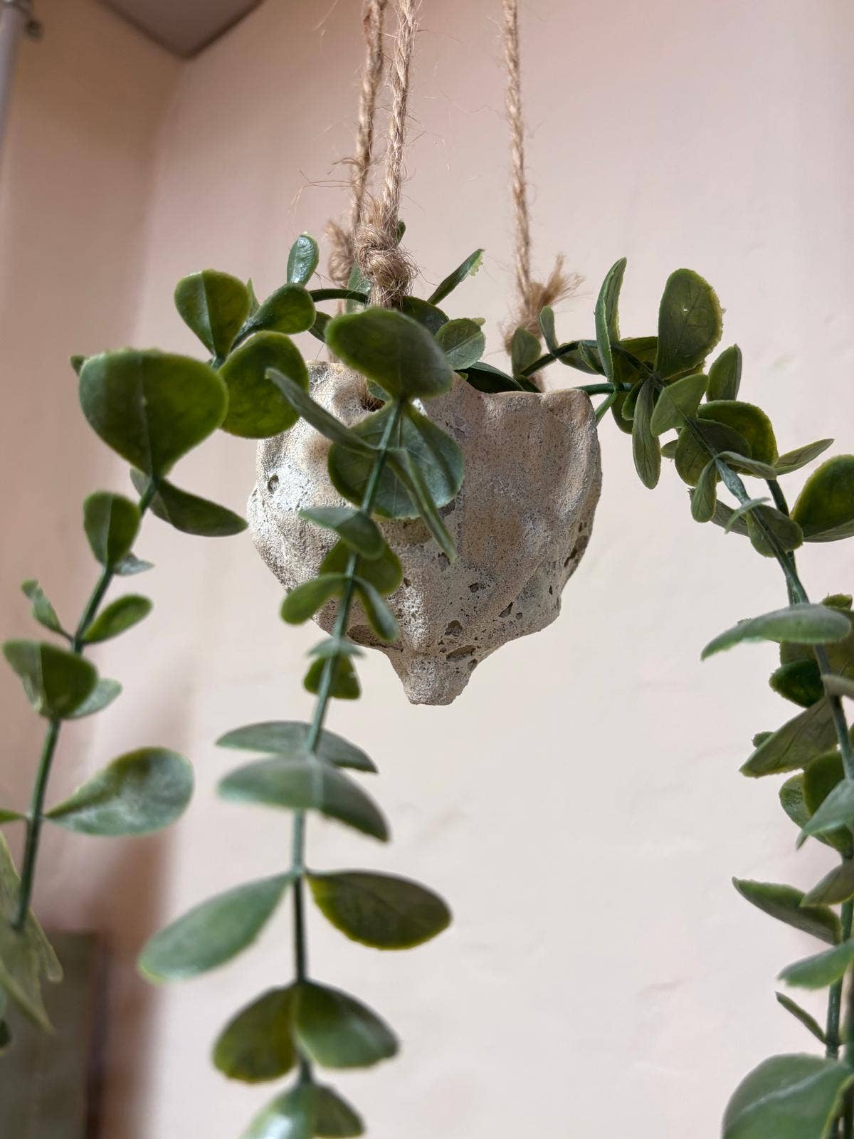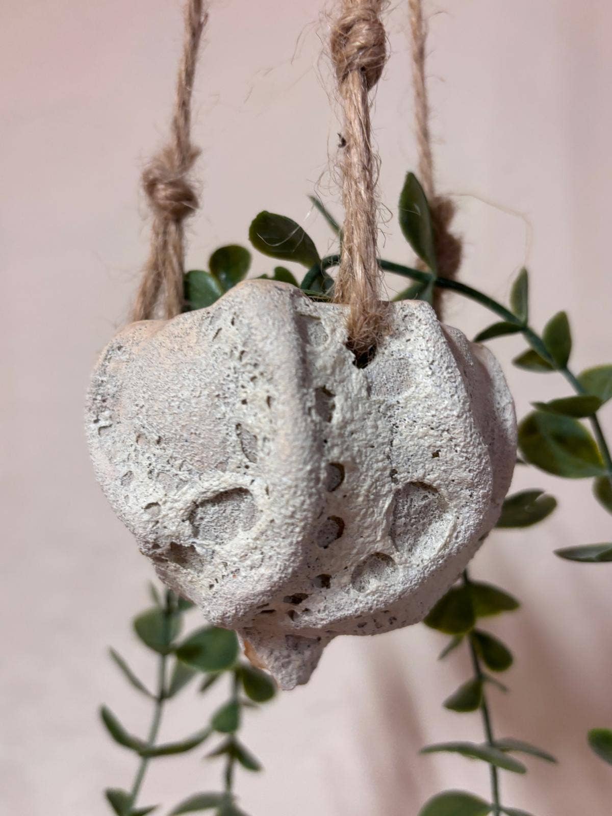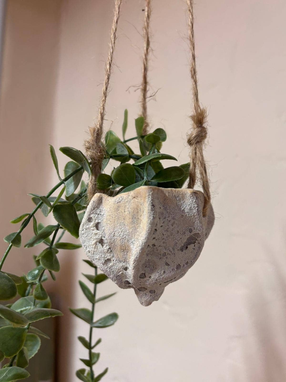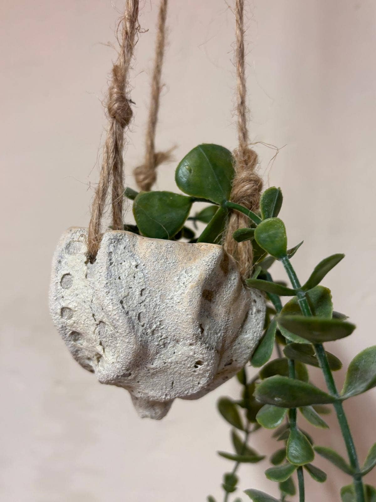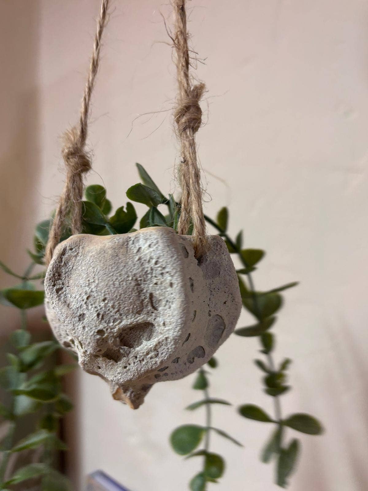 Macetero colgante de cerámica, hecho a mano con un acabado rústico. Su textura rugosa le da un aire natural y orgánico recordando la espuma del mar y la rugosidad de las rocas. Su diseño único, inspirado en la naturaleza, lo convierte en una pieza decorativa especial para quienes buscan un toque artesanal en su hogar o espacio verde. Ideal para: -Plantas crasas colgantes -Tillandsias, plantas de aire 🌿 Características: ✔️ Hecho a mano – Cada pieza es única, con su propia textura y variaciones naturales. ✔️ Estilo rústico y orgánico – Perfecto para plantas pequeñas o suculentas. ✔️ Cordón de yute – Para colgar fácilmente en interiores o exteriores. ✔️ Diseño sostenible – Elaborado en un taller artesanal con técnicas tradicionales. ✔️ Medidas aproximadas: 8 cms diametro x 8 cms alto Para tiendas de decoración, concept stores y amantes de la cerámica, amantes de las plantas que buscan piezas únicas con alma propia.