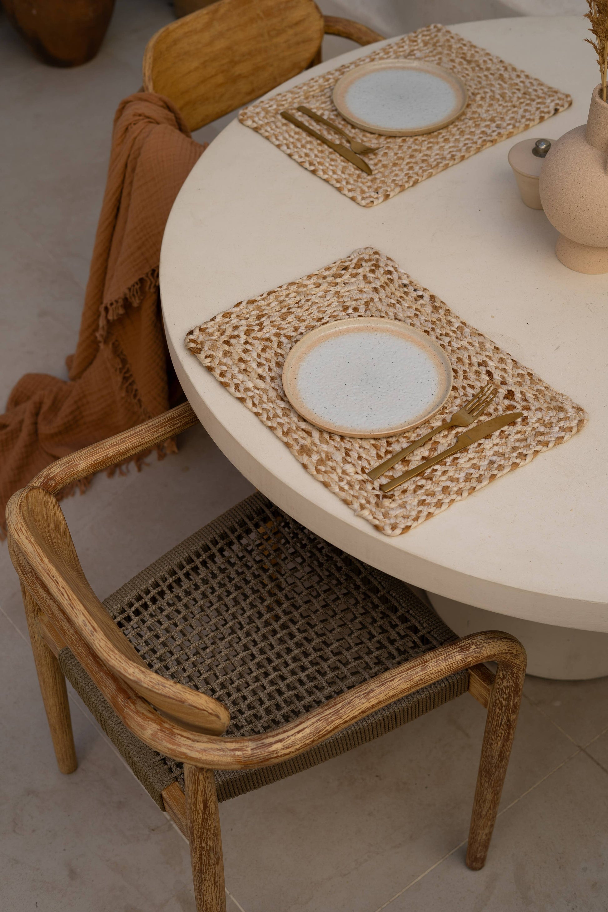 Transporta tu experiencia gastronómica a las soleadas costas de Ibiza con nuestro mantel individual rectangular de yute de doble cara. En tonos que recuerdan a las playas de arena y las conchas blancas prístinas, captura la esencia del abrazo del verano