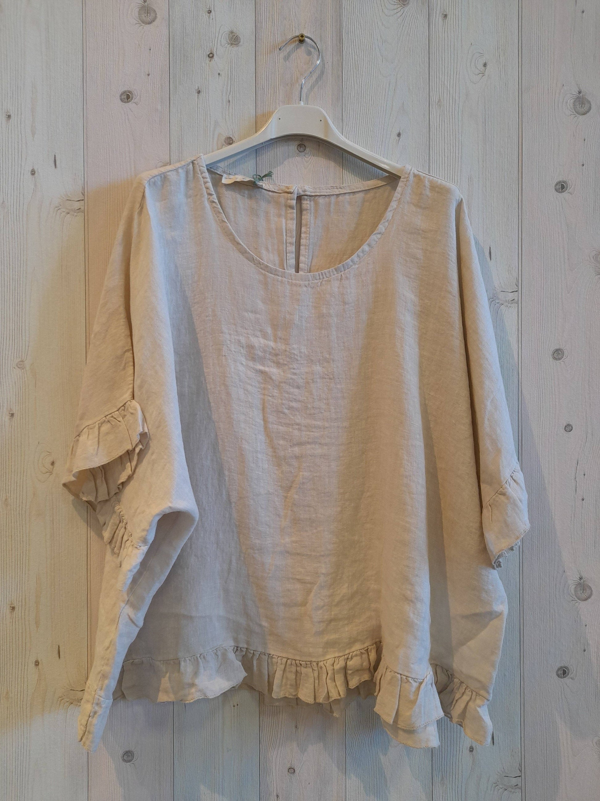 Composición de la blusa con volantes: 100% lino.